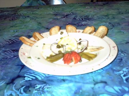 Smoked Trout Appetizer Lightly Smoked and Served with Traditional Red Onion, Capers, Egg and Cornichons