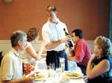 Tim Patrick, a bartender at Wholly Mackerel, discusses wine with Jim and Lynda Silver of Manchester (from St. Louis Post-Dispatch)